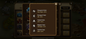The next set you can obtain and is extremely popular in any PVP content is Will which only need 2 to complete a set and this is extremely important for PVP content as it gives the unit that has Will set on Immunity for 1 turn. Immunity basically mean you can’t receive any harmful effects from the enemy team.