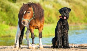Some of the working dogs are rather large as this picture of a Giant schnauzer with a miniature Pony shows.