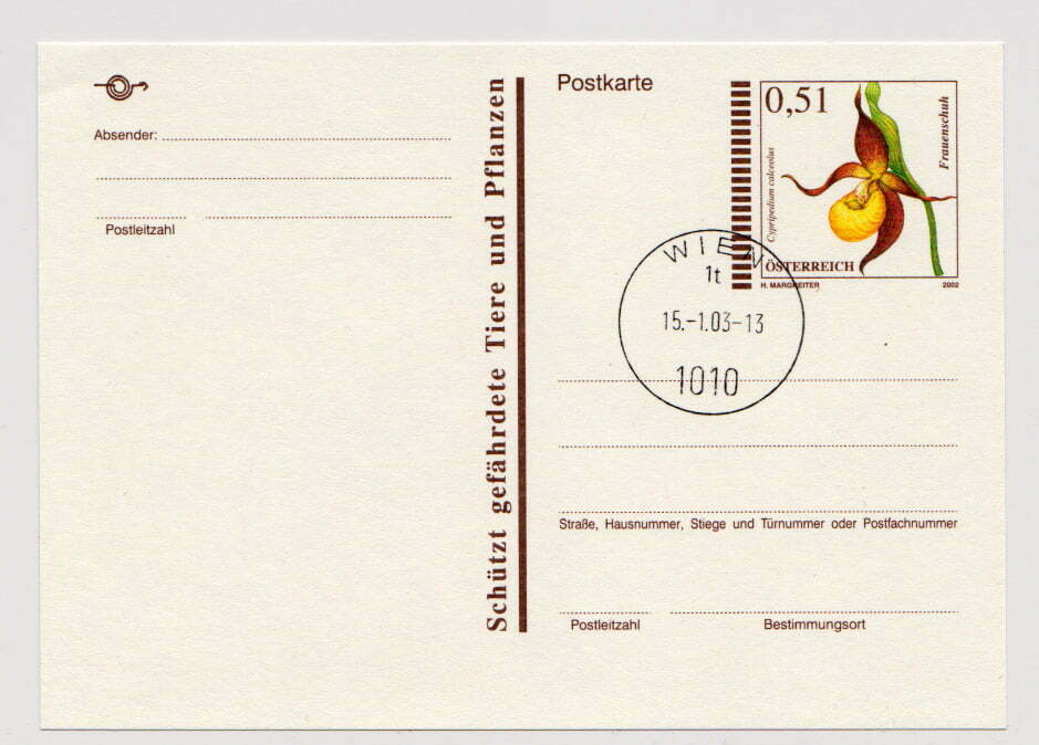 Austria 0.51 Euro Postal Stationery Card CTO 2003 Flowers Theme