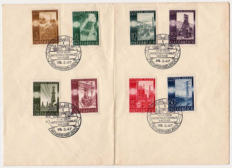 Austria 1947 Vienna Fair set used on a large envelope with Special Cancel dated 26/03/1947