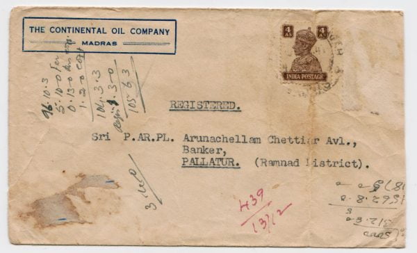 1948 Registered Cover from Continental Oil Company Limited. Pallatur arrival BS.