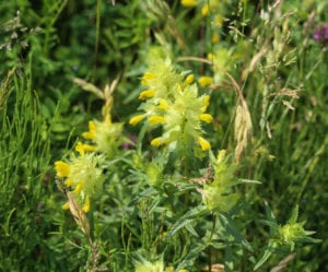Protected grassland flower species the Greater Yellow Rattle is still found at Roundshaw Downs